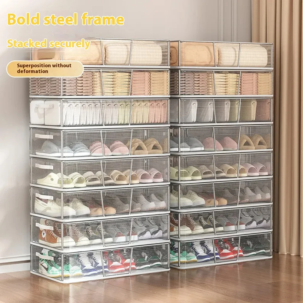 STACKABLE DESIGN - Reinforced steel frames allow you to safely stack multiple boxes to optimize vertical space in storage areas, maximizing corner space utilization at home.